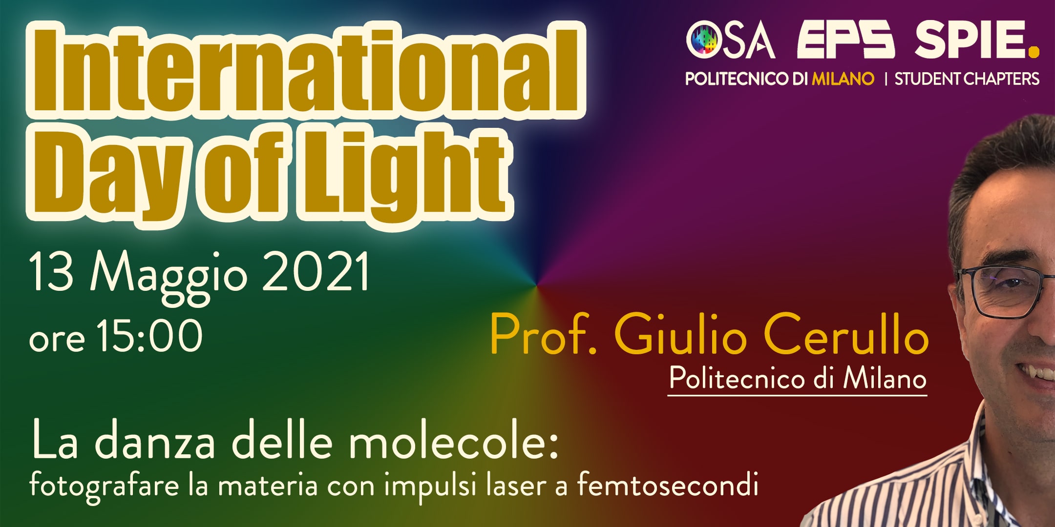 In the context of the International Day of Light, we invited Prof. Giulio Cerullo, a pioneer in the generation and manipulation of ultrashort flashes of light, from the Physics Department of Polimi.