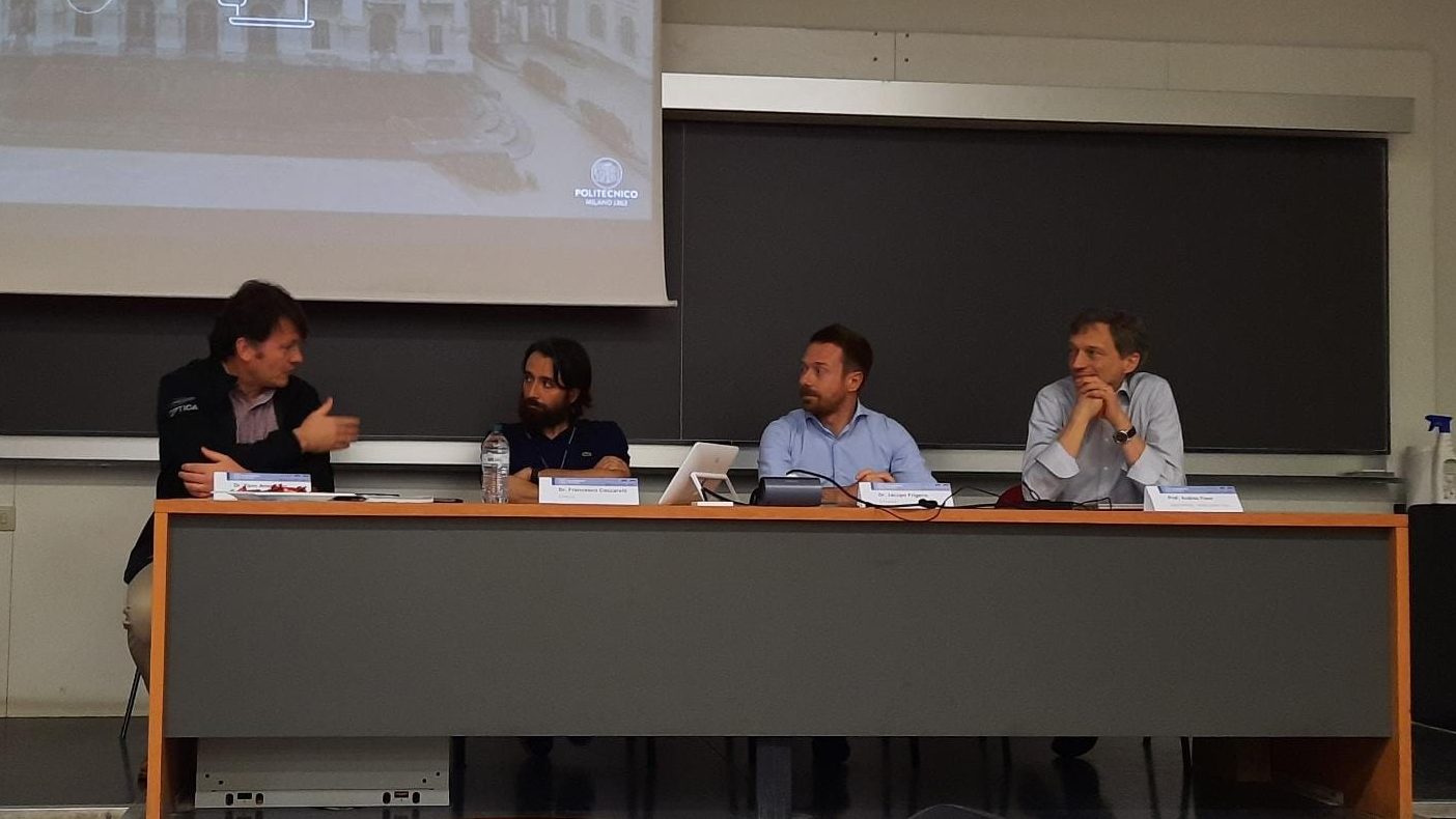 Then, after a coffee break, we continued with a round table, featuring Andrea Fiore (himself co-founder of several start-ups in the Netherlands), Francesco Ceccarelli (IFN-CNR) and Jacopo Frigerio (Politecnico). They are co-founders on two very young start-ups based in Italy, and on quantum circuits and vis-NIR imaging respectively.