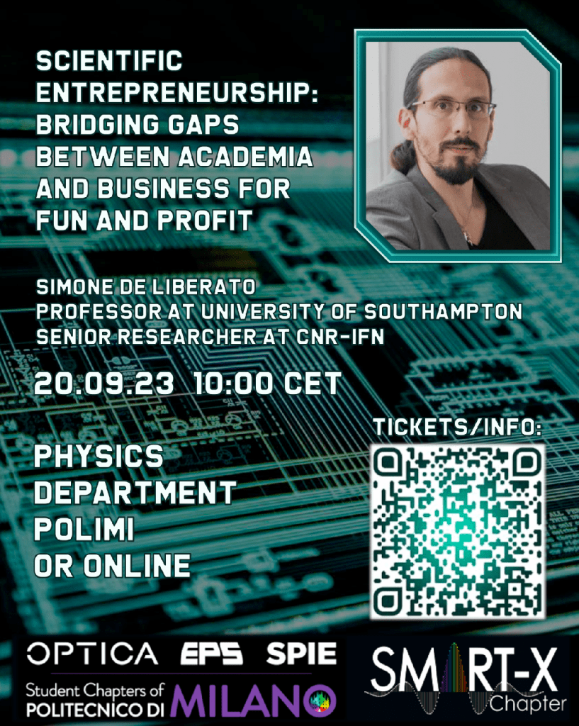 On September 20th, 2023, we had the pleasure of hosting Simone de Liberato, a professor at the University of Southampton, a senior researcher at CNR-IFN, and a co-founder of multiple startups.